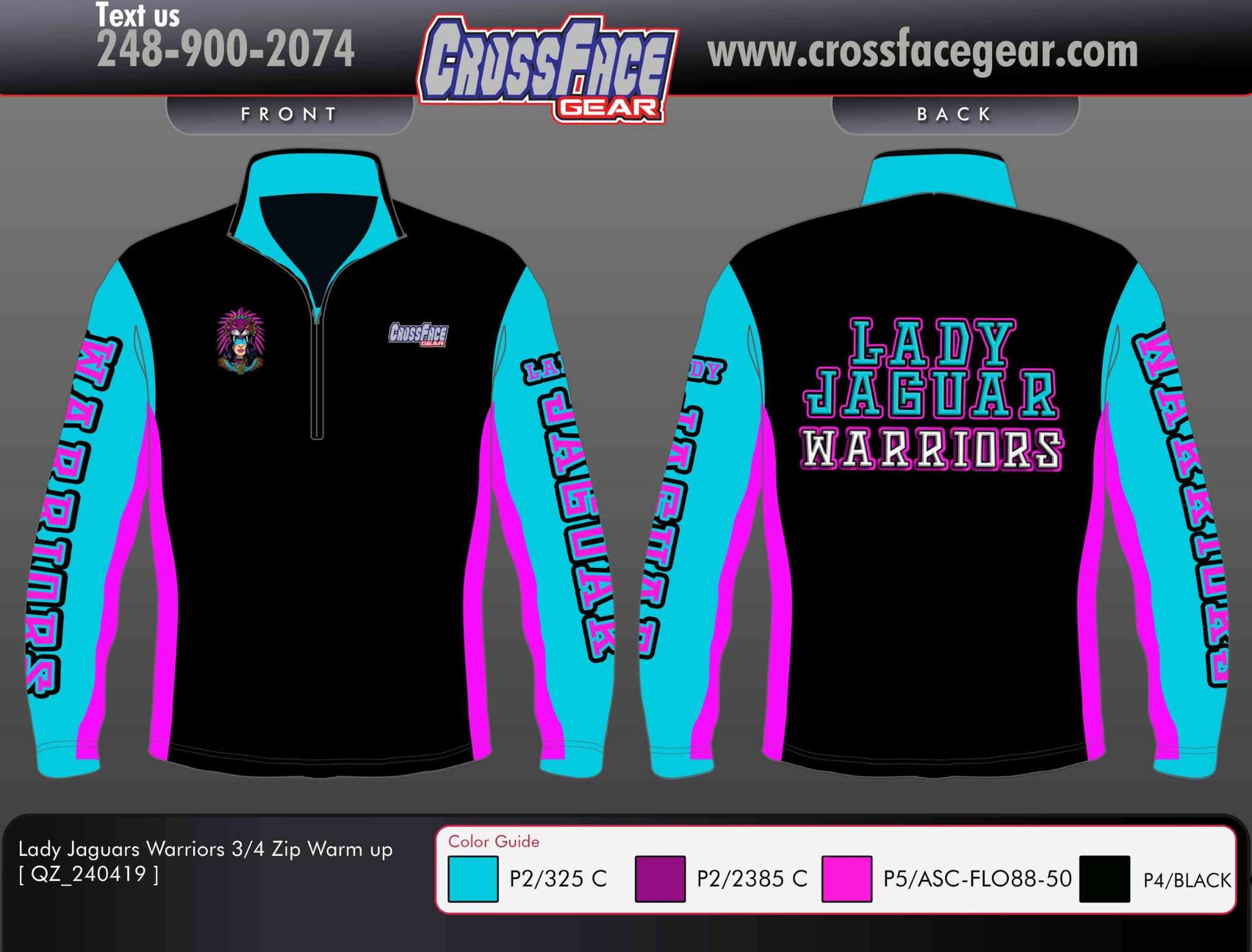 Lady Jaguar Warriors Full Sublimated 3/4 ZIp Warm Up